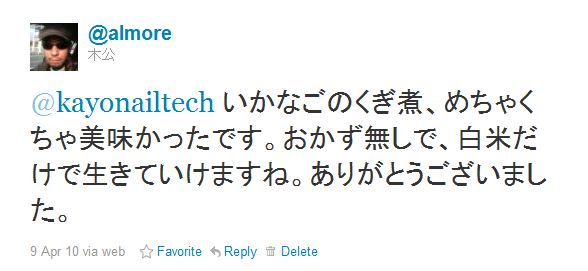 さらに、twitterのログを検索したらわかるのだが、「生きていてよかった」と思うことは必須ではなかった。いかなごのくぎ煮があれば、そのおかずさえあれば、あとは白米だけで生きていけると宣言していた例もあった。