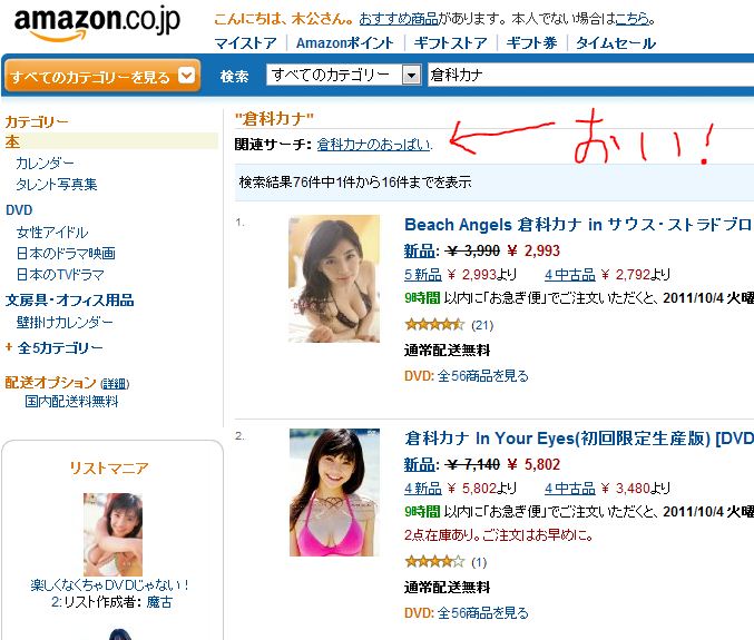なお、Amazon の「倉科カナのおっぱい」というリンクをクリックしても、出てくるのは2011年のカレンダーだけであり、特におっぱいと深い関係があるとは思えなかった。