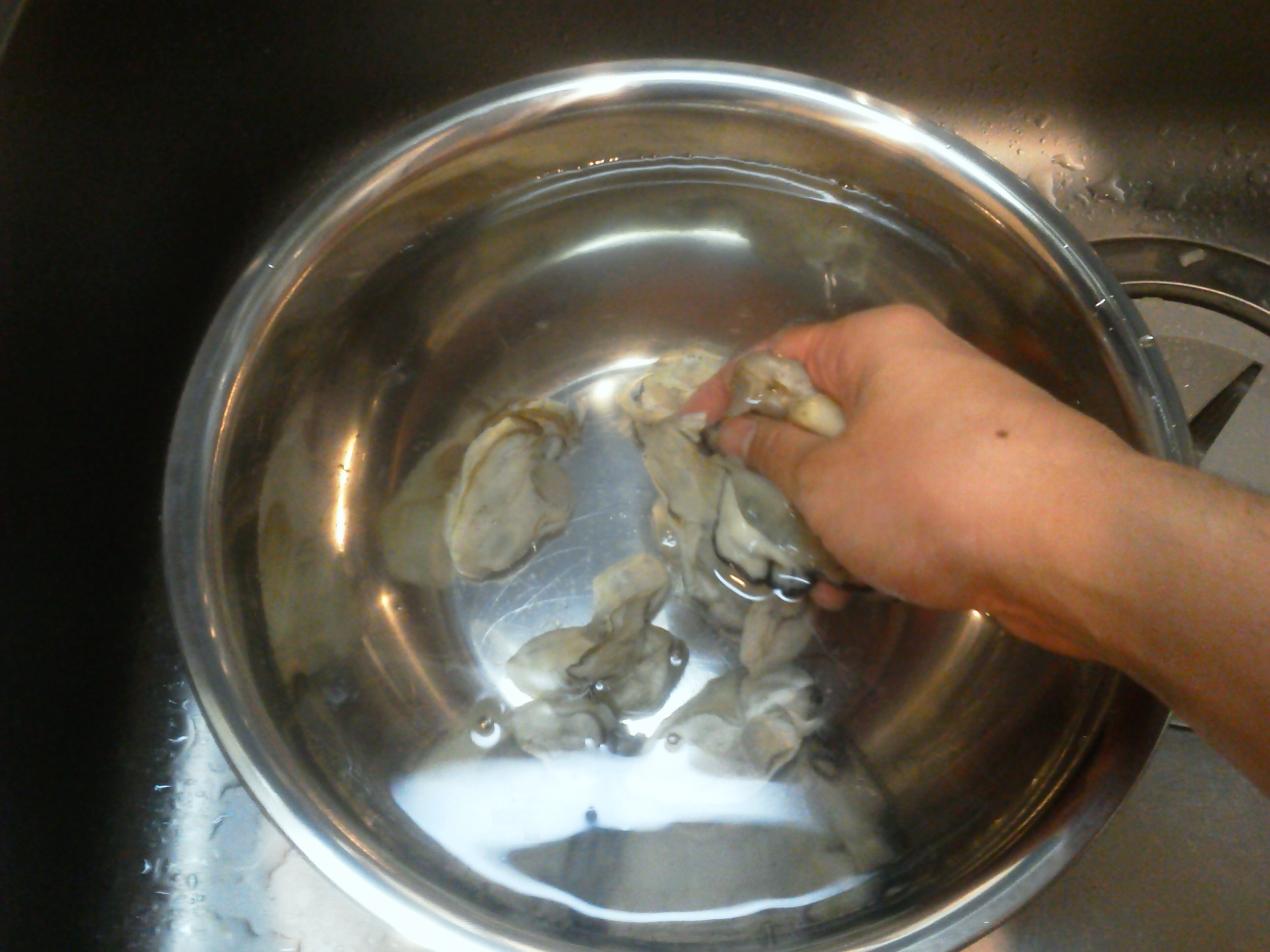 【カキを洗う】