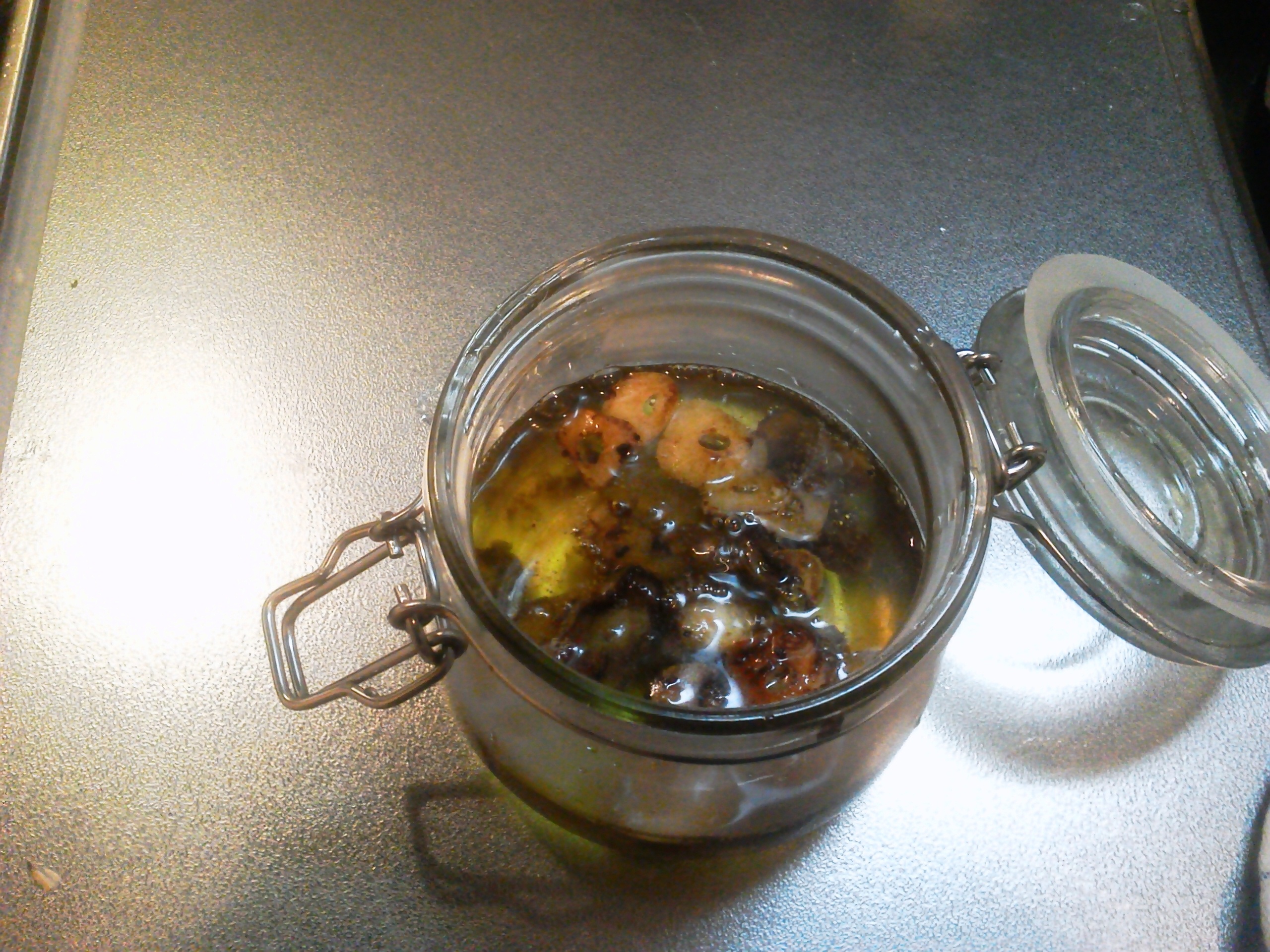 以上、今日はオイルに漬け込んで保存するところまで。